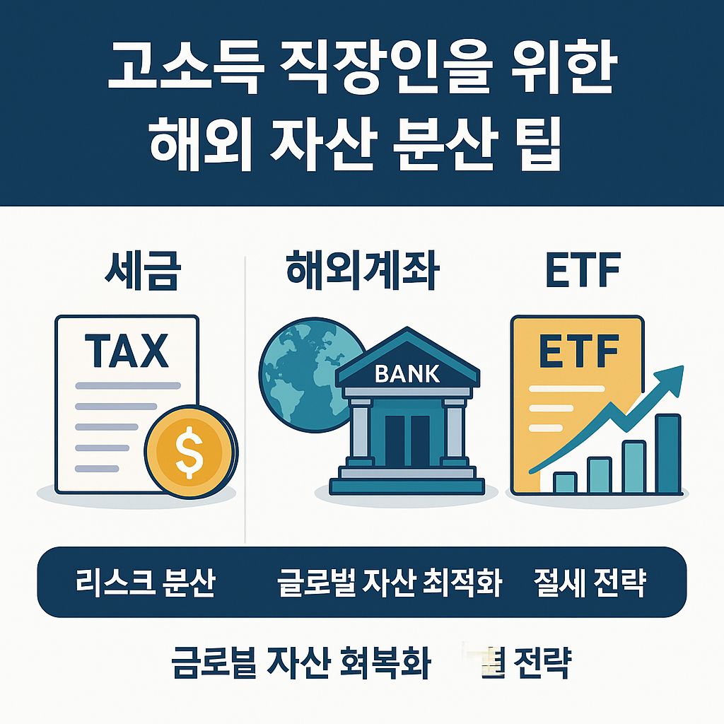 국내 자산시장 변동성이 커지고, 원화 약세와 글로벌 금리 차가 지속되는 가운데, 고소득 직장인들의 자산관리 방식이 해외 자산 분산 중심으로 전환되고 있습니다. 특히 연 1억 원 이상 소득자, 전문직, 중견기업 이상 임직원들은 세금, 규제, 환율 리스크 등을 고려해 해외 ETF, 외화 계좌, 현지 주식 직접투자 등의 방법을 활용하고 있습니다. 이 글에서는 고소득 직장인을 위한 해외 자산 분산 전략과 실질적인 실행 팁을 '세금', '해외계좌', 'ETF' 관점에서 소개합니다.